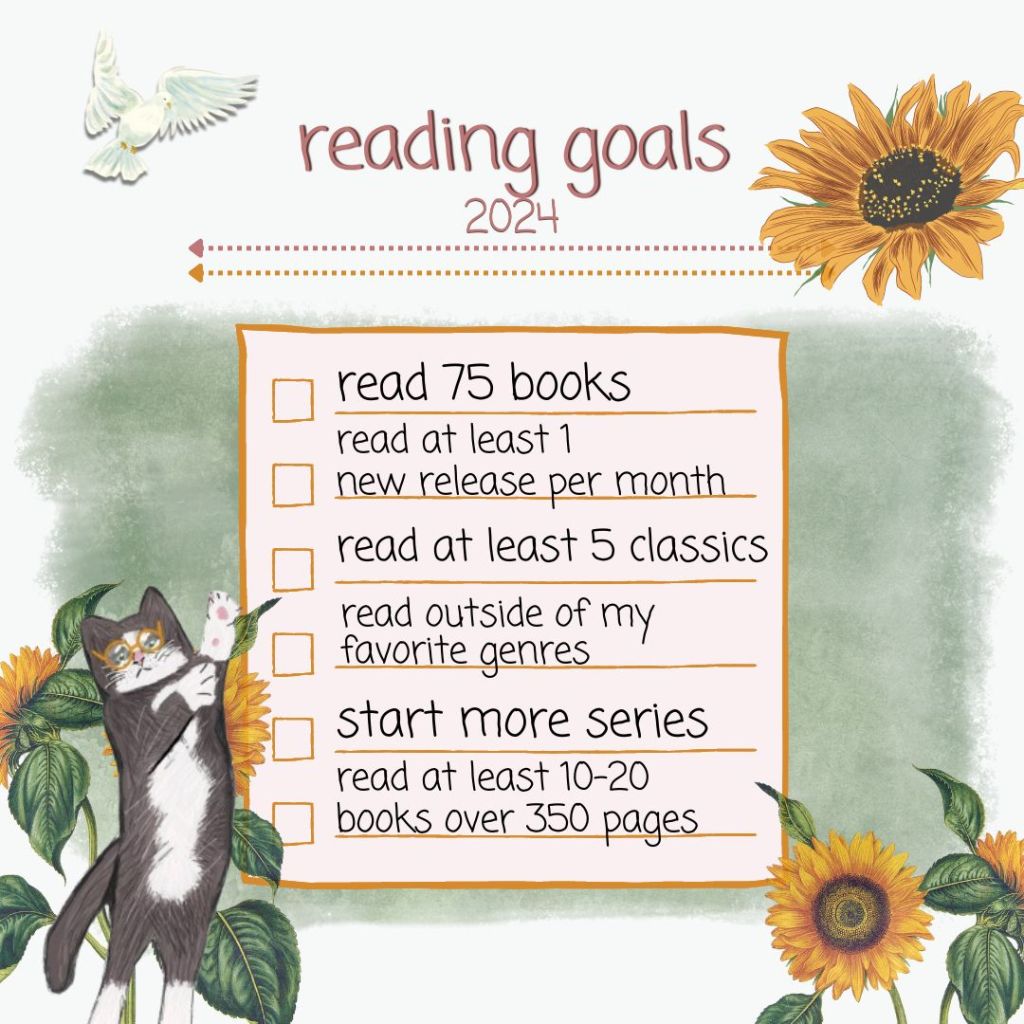 This is a big one for me. Read a new release every month. Last year, since I was still finding out what I liked, I didn’t keep up with too many new releases. Just reading 1 per month is a bit low but knowing myself, I have a lot of older books I might want to prioritize over new releases (I’m still catching up after all)! I hope aiming for at least 1-2 new releases per month will keep me up to date enough to engage in conversations with people reading 2024 books!